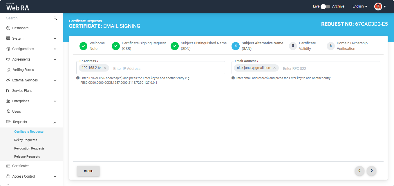 Submit a Certificate Request based on Email Signing using CSR