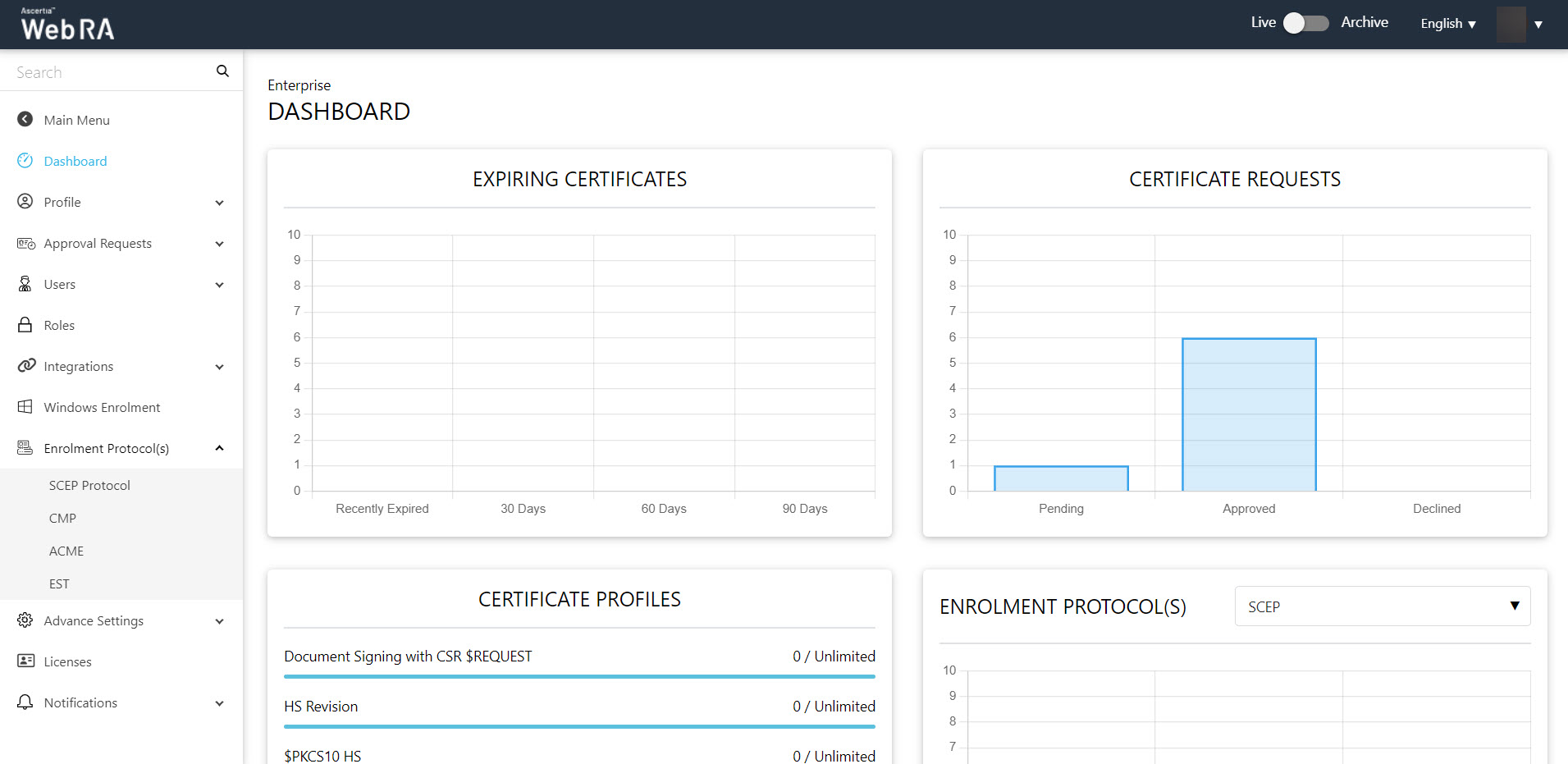 The enrolment protocol (s) menu will expand into a sub-menu and it will appear as displayed in the screenshot below. You can select a protocol from the following: