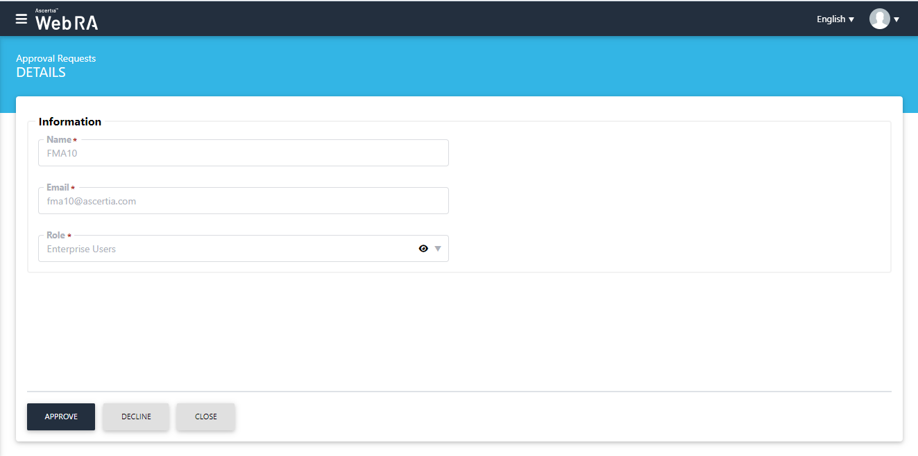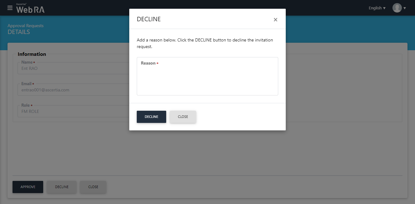 If you select Decline, the following Approve Request screen will appear: