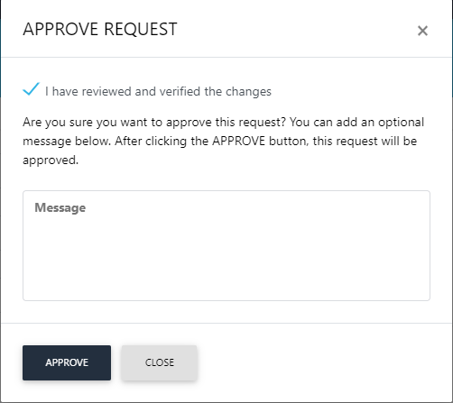 If you select Approve, the following Approve Request screen will appear: