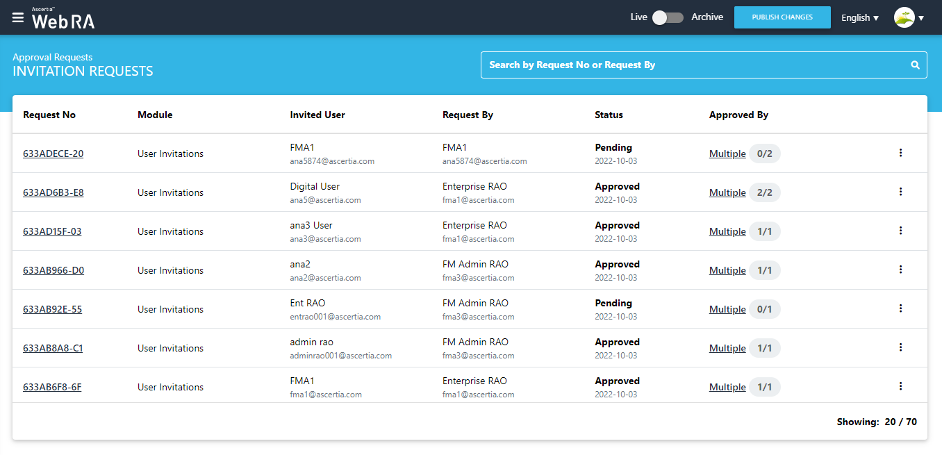 If a request is approved by the relevant RAO (s), the invitation will be sent to the user successfully via email. When user accepts the invitation via email, he will be registered, the user will appear in the registered user listing.