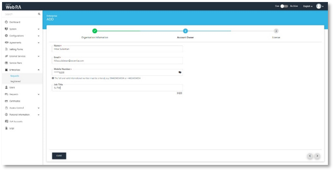 - The rest of the fields are optional include the Given Name, Surname, Title, Organization Unit, Organization, Organization Identifier, Email, Locality, Street Address, Postal Code, State, Country, Serial Number, Business Category.