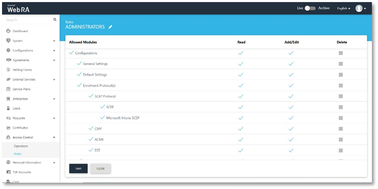 - Certification Profiles created for ADSS Server and Web RA.