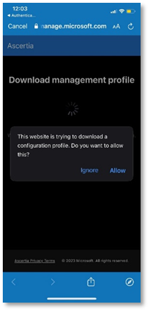 - If prompted to, allow permissions to download a configuration profile.