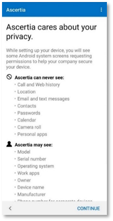 - Review what your organization can and cannot see. Then tap Continue.