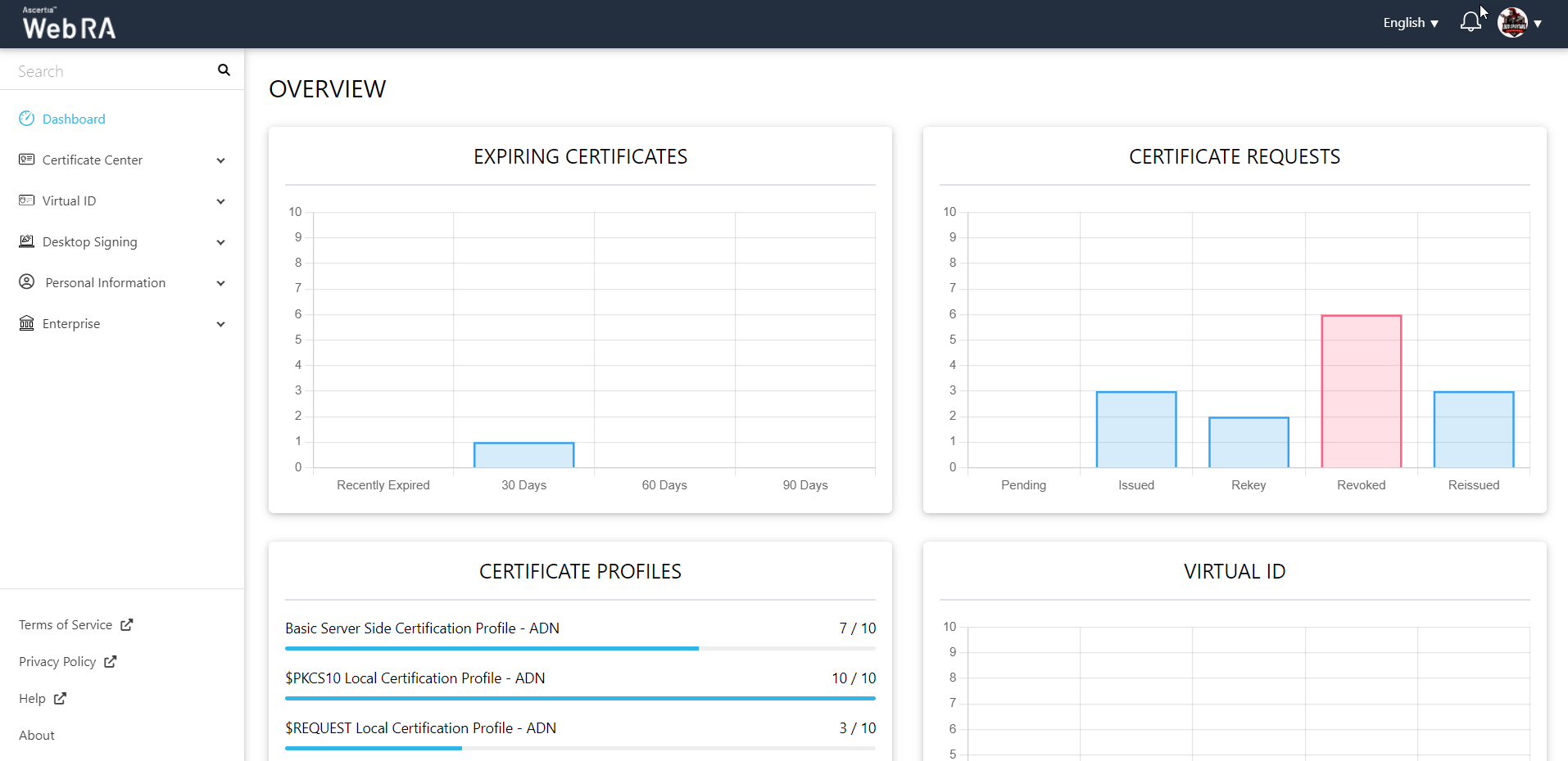 An alert icon is shown on top right corner of the ADSS Web RA screen, showing the number of alerts generated by the system. There are mainly two types of notification alerts. i.e. Account and Certificate Request (Approve/Decline/Revoke etc.).
