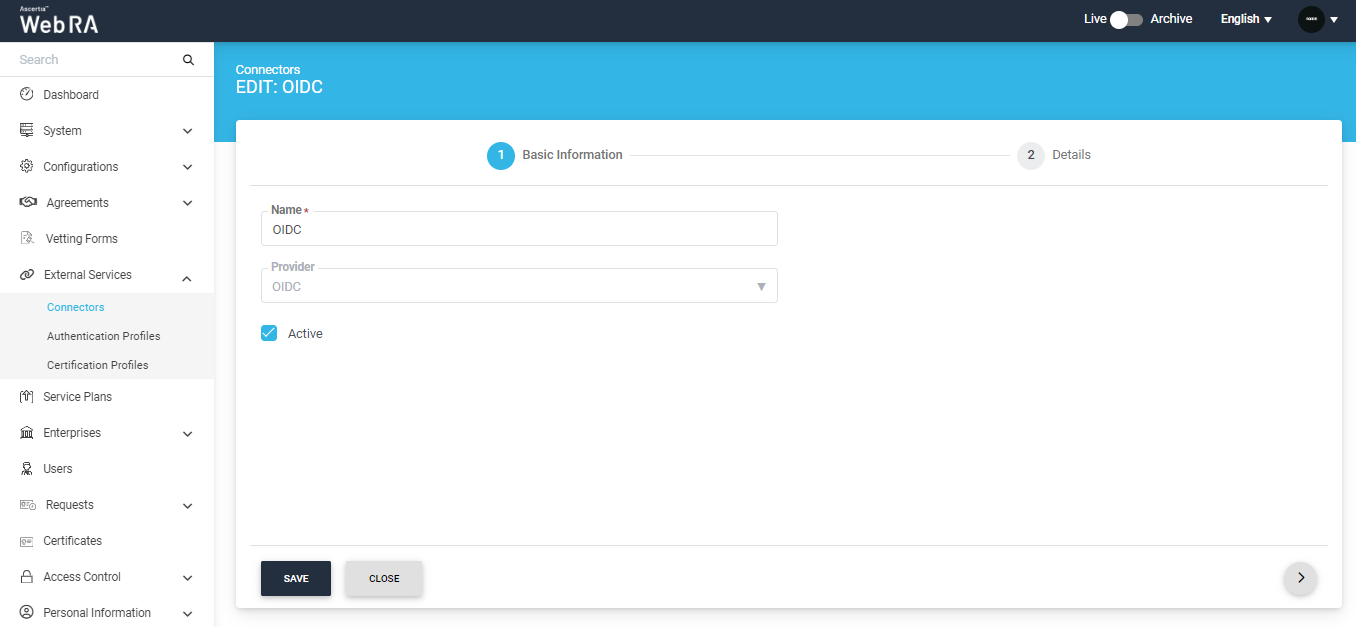 A connector is required in ADSS Web RA Admin to communicate with OpenID Connect (OIDC).