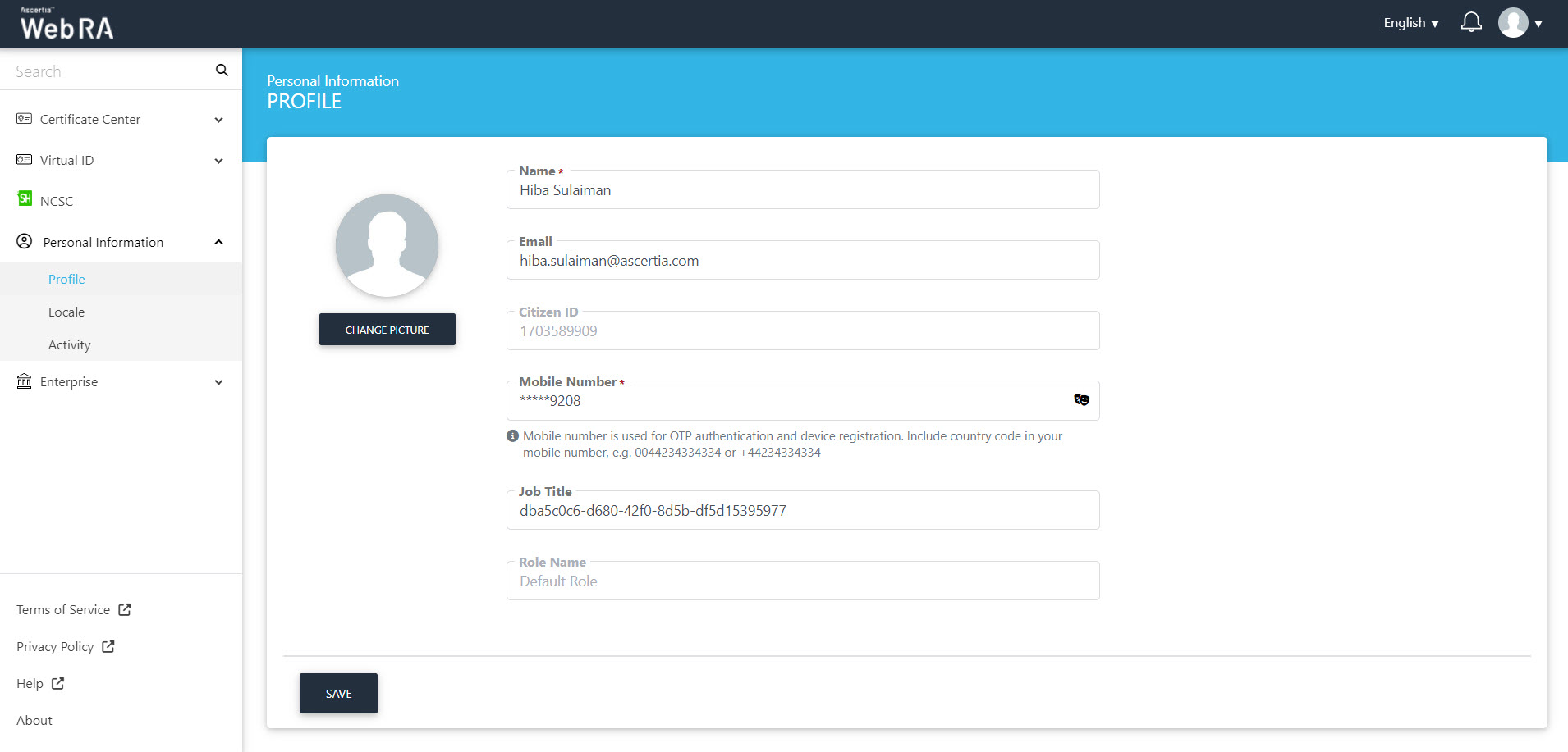 From the profile section, a user can change picture, and update other information like name, mobile number and job title. There are two ways to sign-up to ADSS Web RA web portal, and the profile screens for both will be slightly different. Read below to learn more: