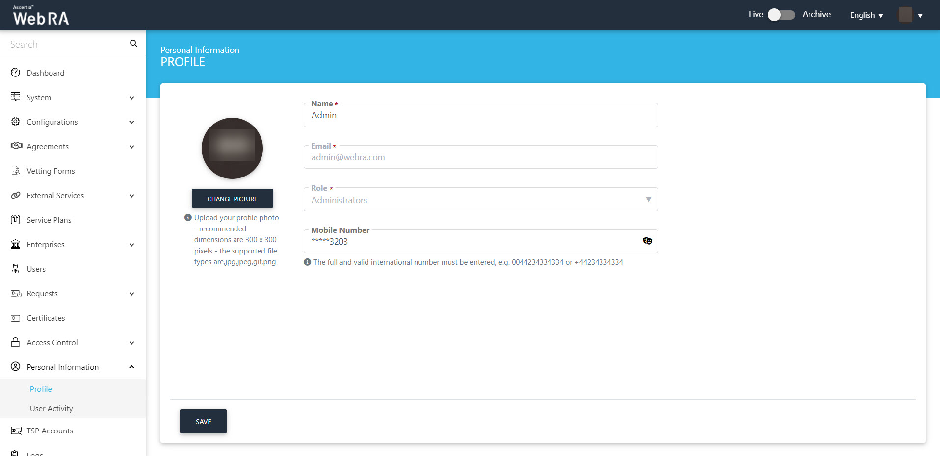 Read-only field to show your email address that is registered as ADSS Web RA Admin RAO. |