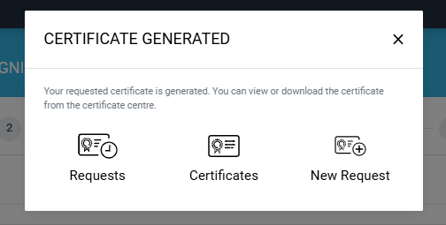 Note: The welcome note will only appear during the creation of a certificate request if the operator has added customised request notes in the enterprise that the user belongs to. For more details, navigate to Request Notes.