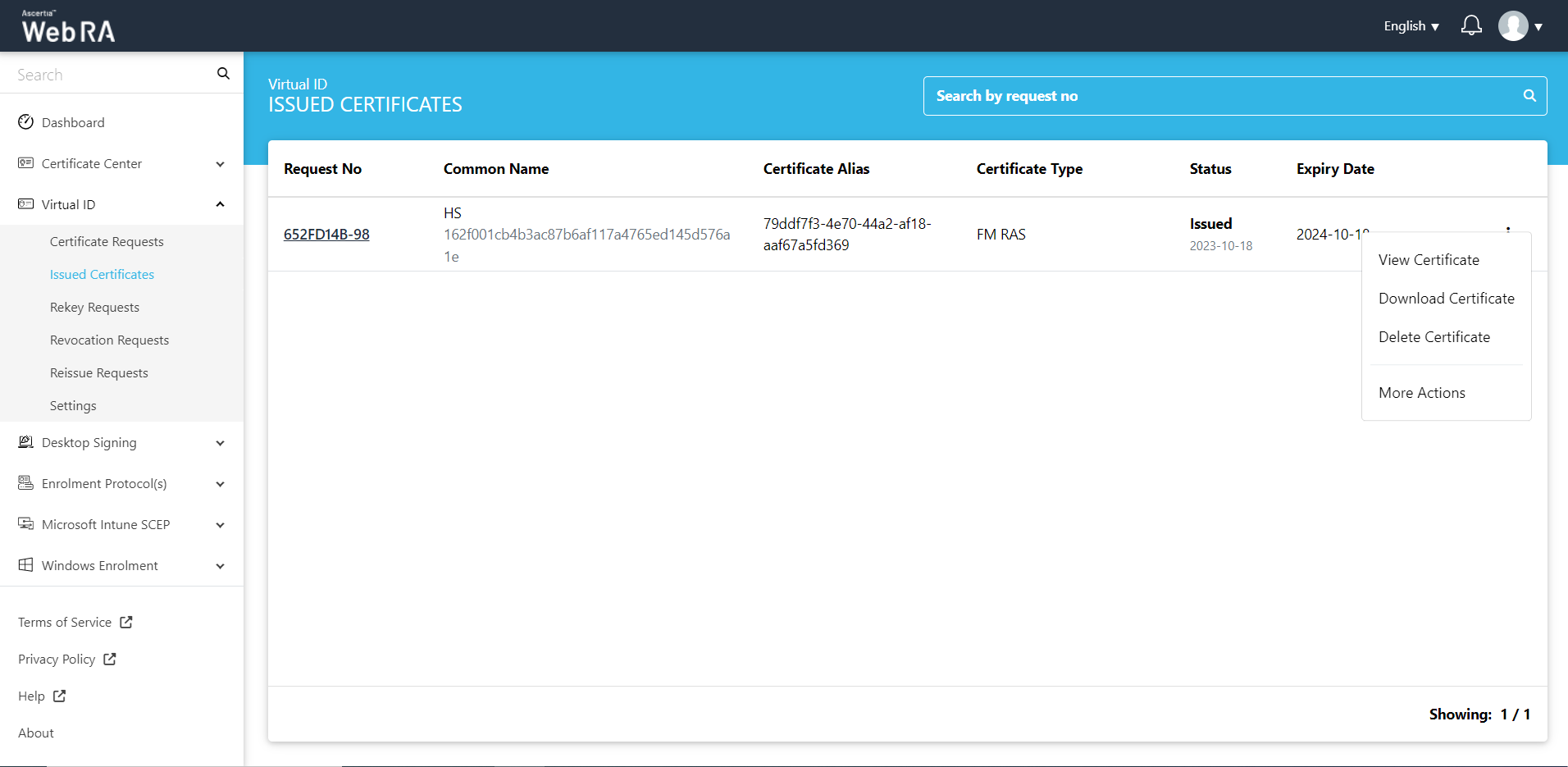 - Expand Virtual ID > Issued Certificates.